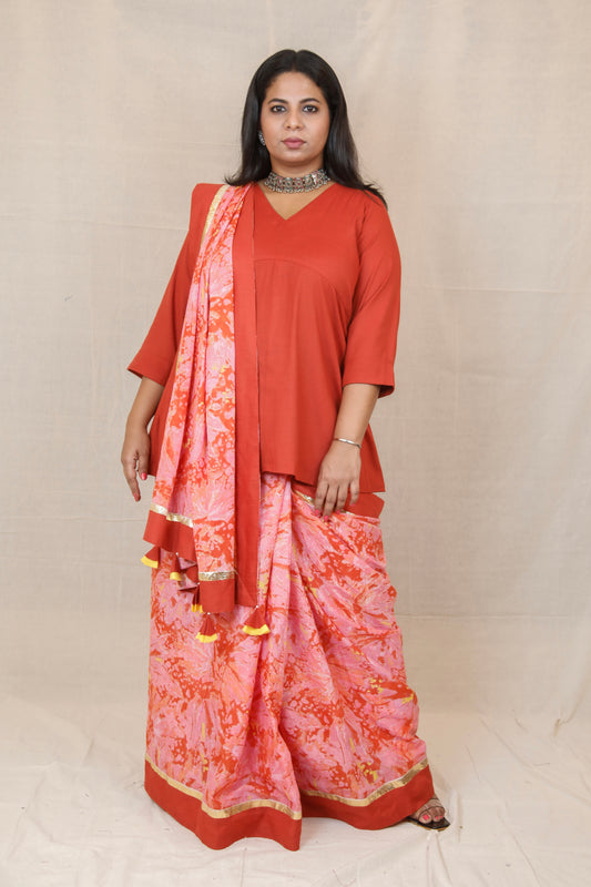 Aayat - RUST - Crape Silk with soft silk tie-dye dupatta optional
