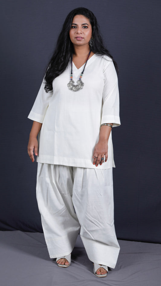 Meher - Pure White cotton Anarkali set + mul dupatta