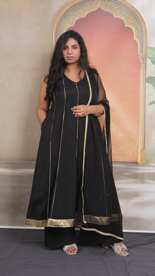 ADYA - CO ORD SET - BLACK SOFT COTTON ( WITH MUL MUL DUPATTA OPTIONAL )