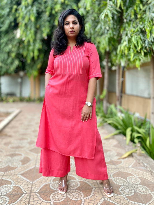 Falak - Short kurta pant set - Soft cotton - Raspberry Red