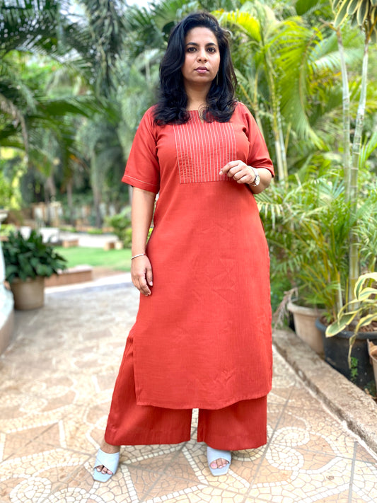 NAINA - ONLY KURTA - RUST ( Thread work )