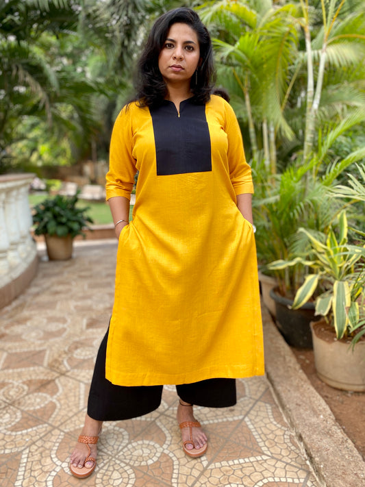 Falak - Short kurta pant set - Soft cotton - YELLOW