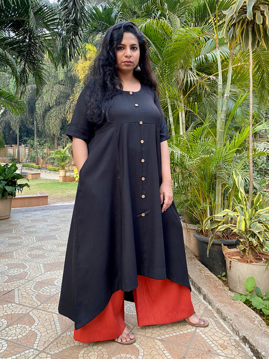MAHIRA - Kurta & Skirt Set - BLACK - soft cotton