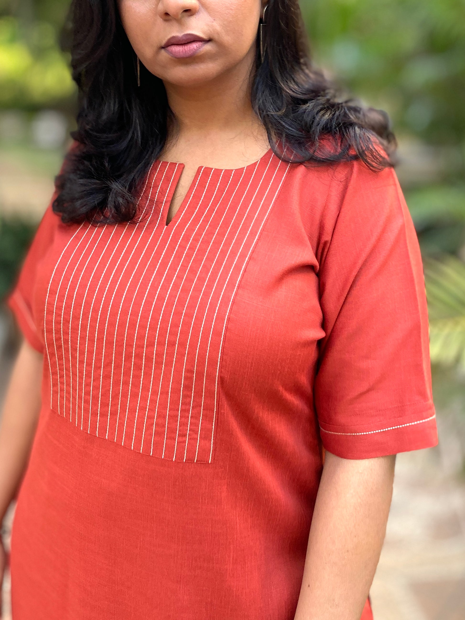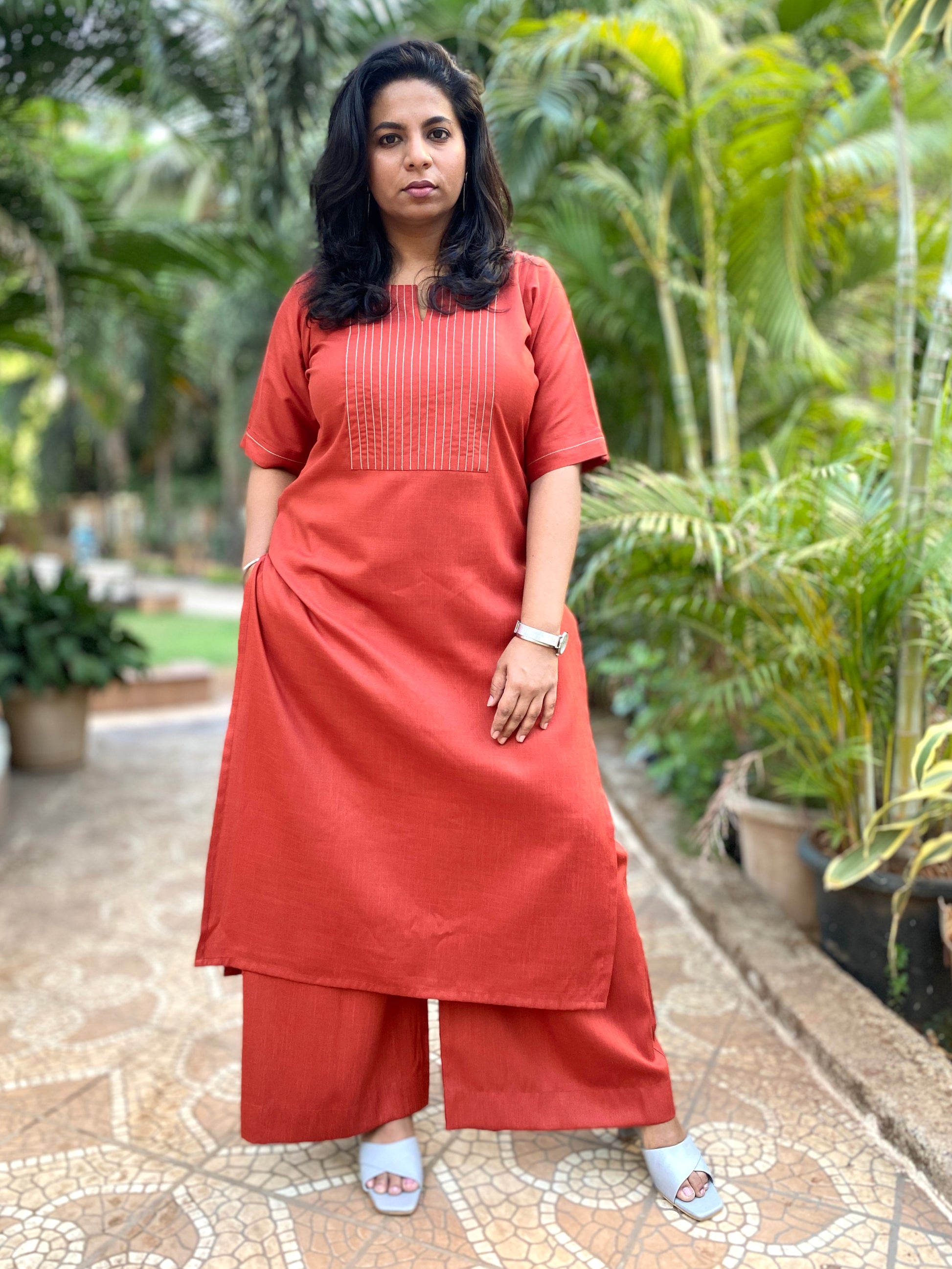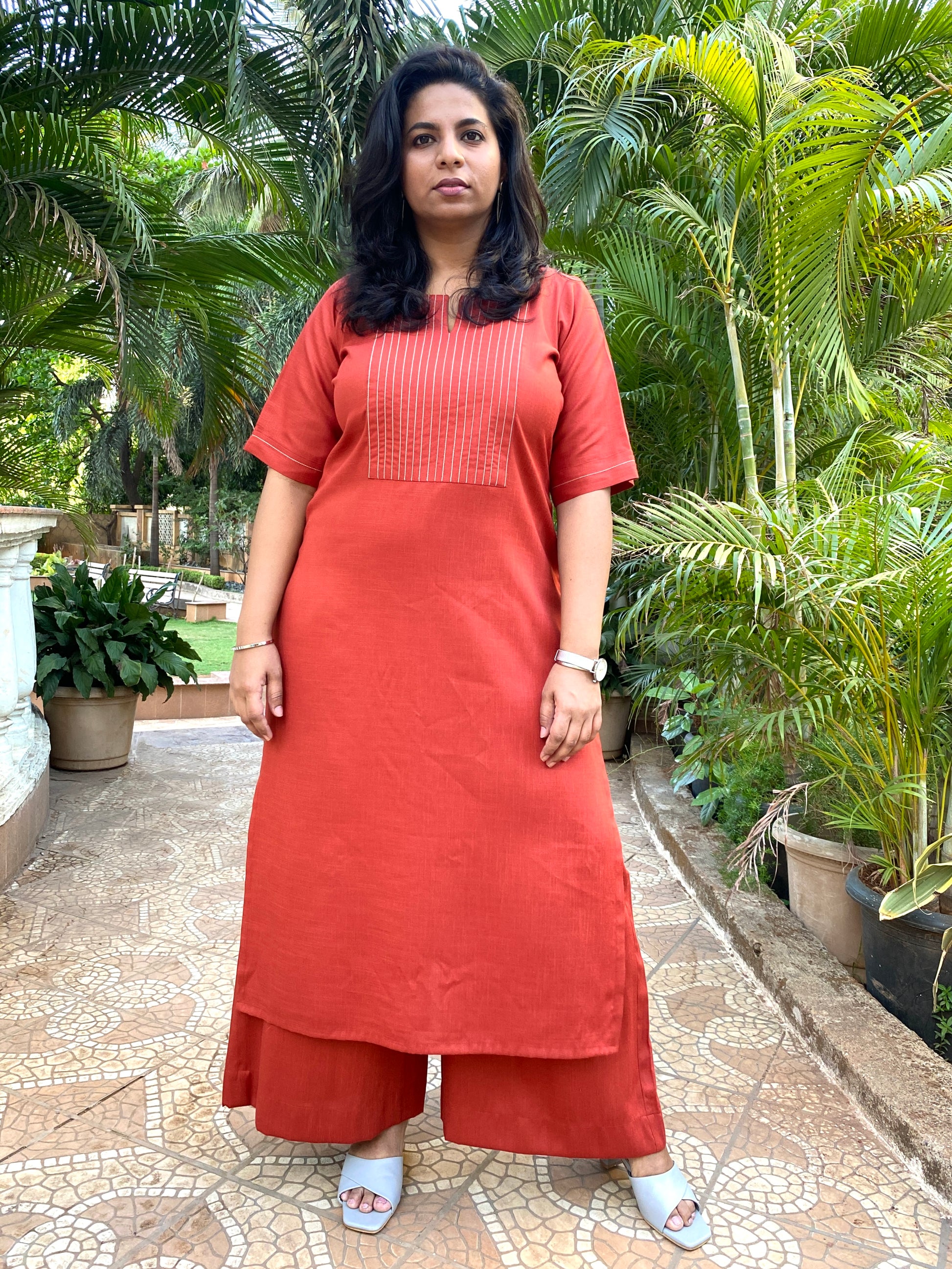 NAINA - Kurta and Pant Set - RUST ( Thread work )