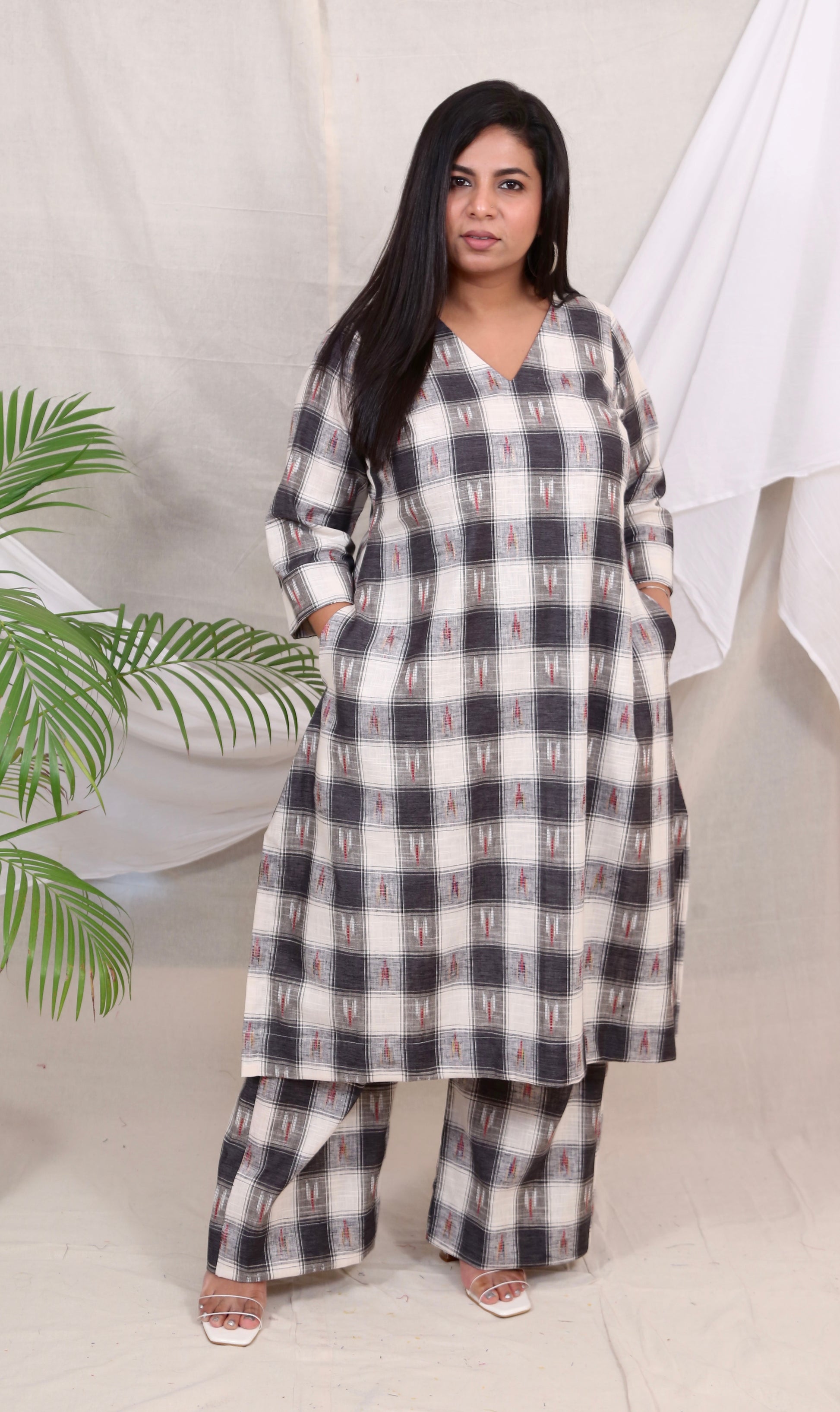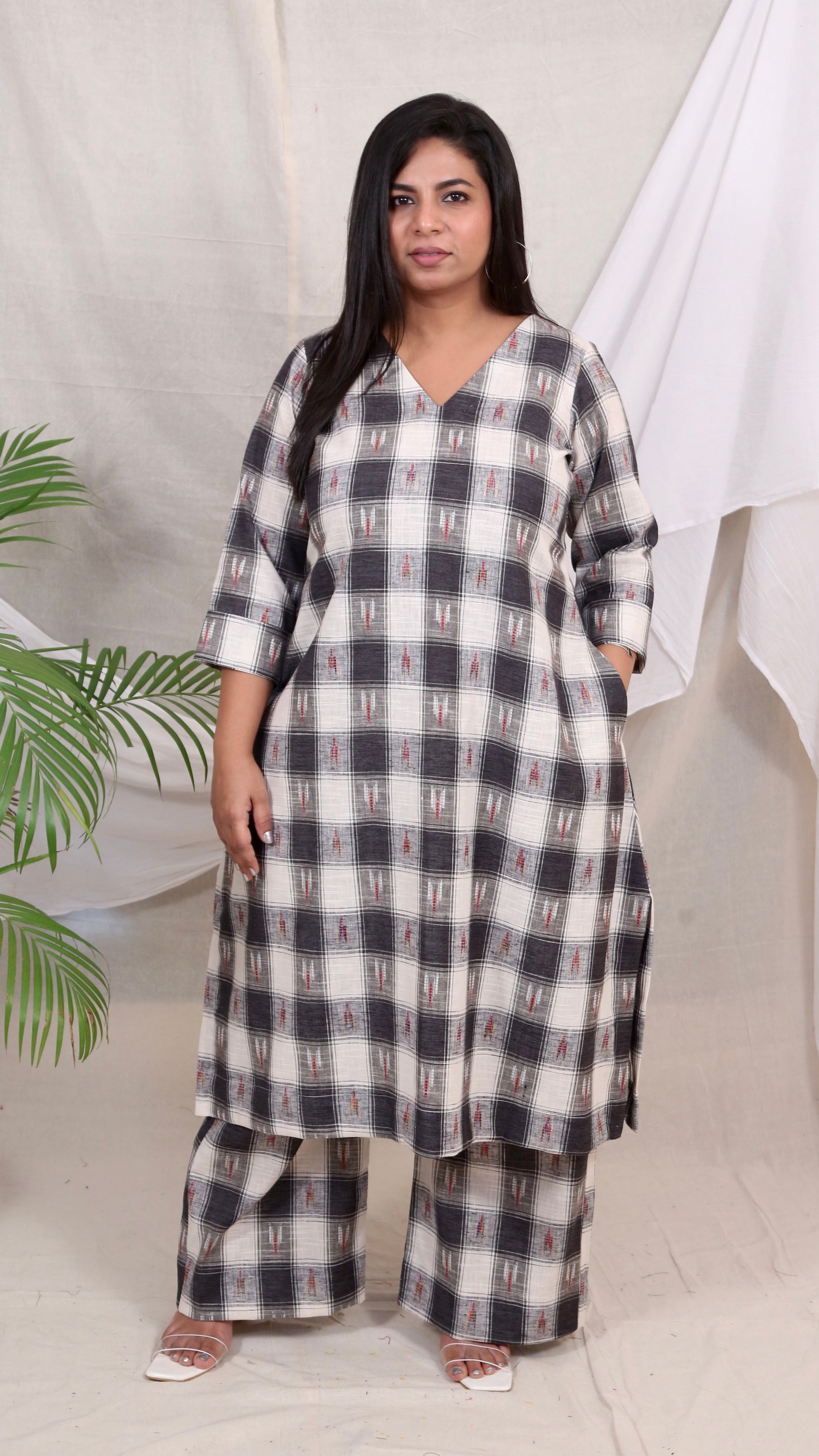 MAYA co-ords - Linen checks ikkat boota - BLACK