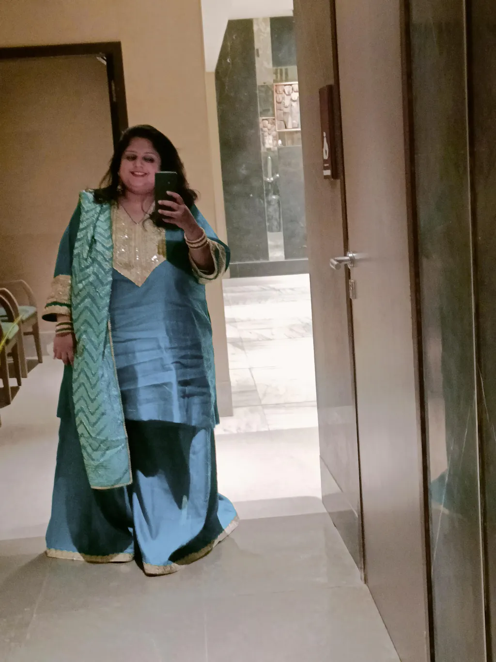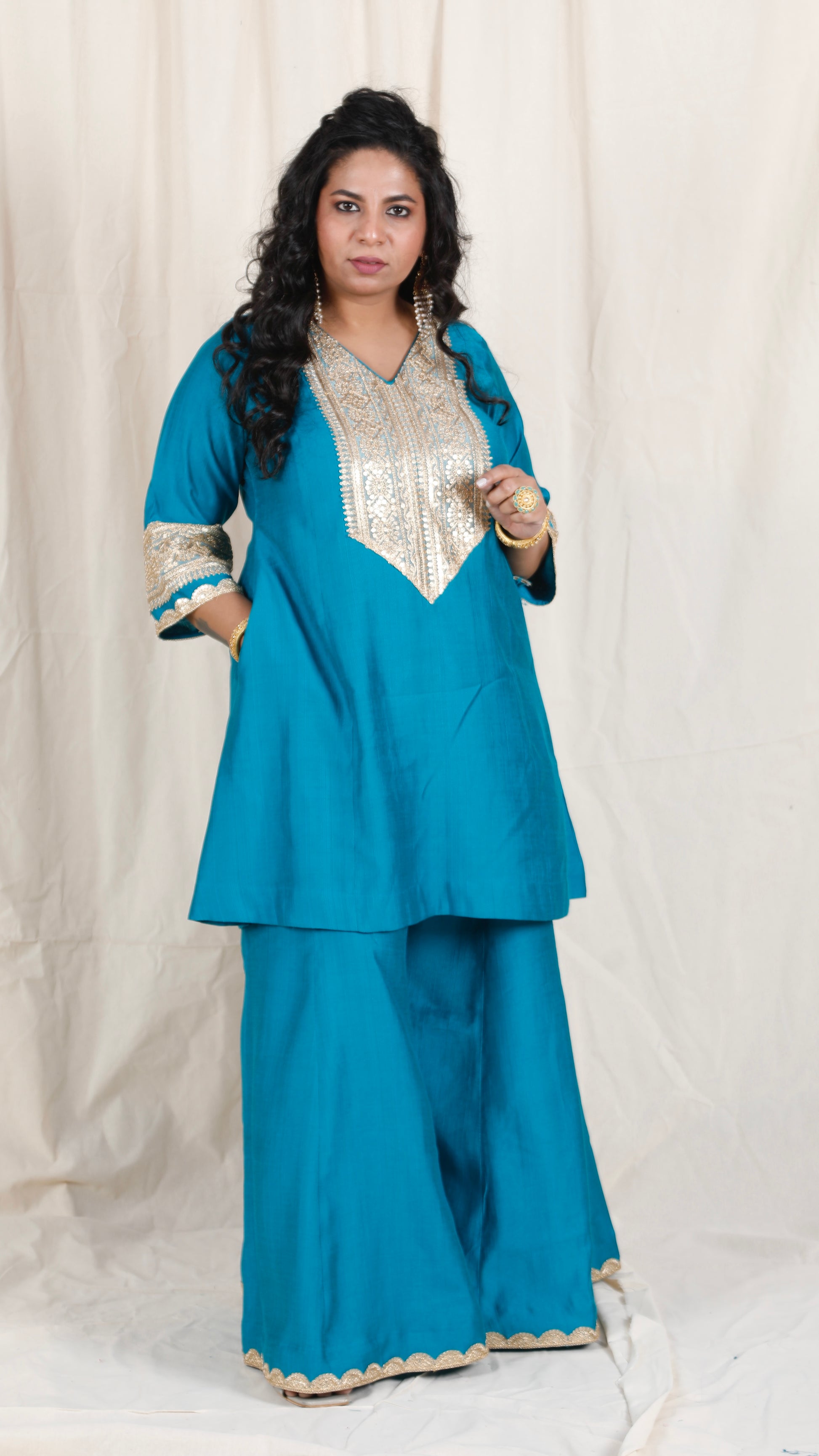 Shanaya - 3 pc set - BLUE - Crape silk + Zari Dupatta